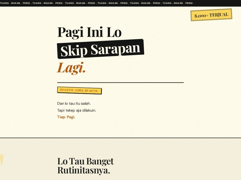 A high-impact, brutalist-style food landing page template designed to convert breakfast skippers into healthy meal prep customers with bold typography and psychological triggers.