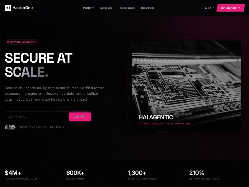 A dark, high-impact landing page template for offensive security, bug bounty, and AI red teaming platforms to convert security-minded enterprise teams.