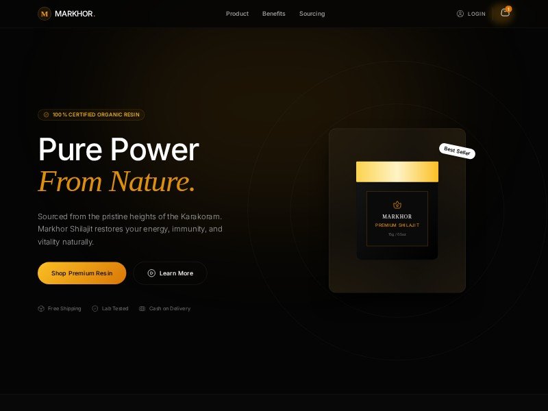Markhor Shilajit Landing Page Template is a high-converting, single-product layout tailored for natural supplement brands.