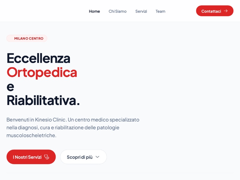 A polished, Italian-language landing page template tailored for orthopedic and rehabilitation clinics, featuring a red medical brand aesthetic.