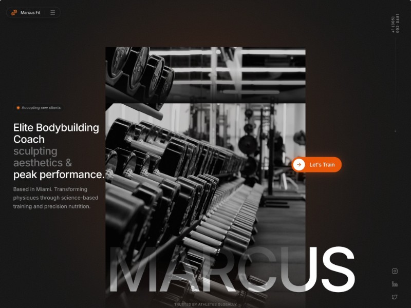 Ideal for personal trainers, bodybuilding coaches, and performance specialists who need a sleek one-page portfolio to showcase credibility, connect social channels, and convert visitors into clients.