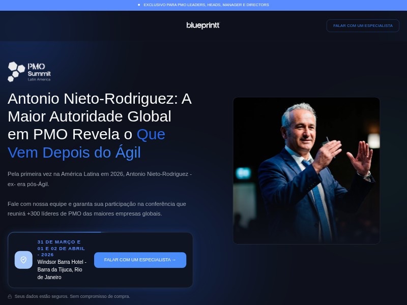 Primary use case: launching and marketing a professional conference, summit, or leadership event for PMO and transformation audiences.