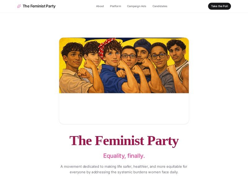 A reusable political campaign template for advocacy groups and movements to showcase policy platforms, candidates, campaign media, and public opinion polls.