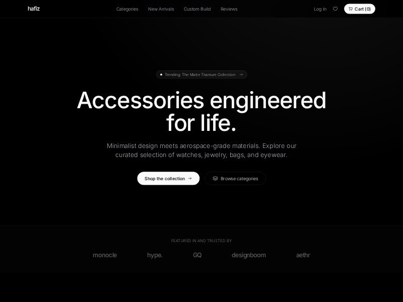 A reusable e-commerce template for premium accessories brands to showcase collections, custom product options, reviews, and email capture in a sleek storefront.