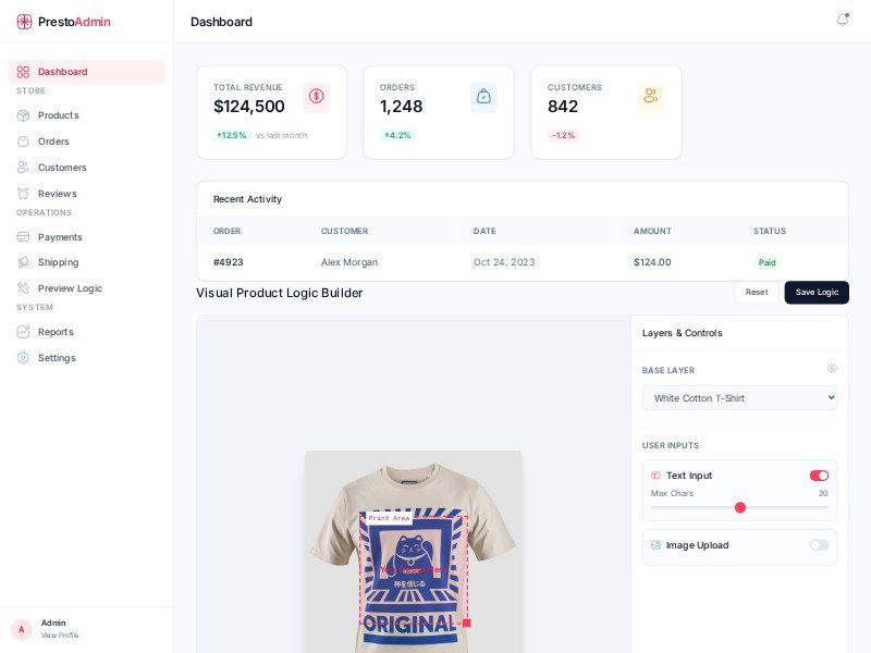 Presto Admin Suite is a polished e‑commerce admin dashboard template built with Tailwind CSS, designed to manage your entire store back office.