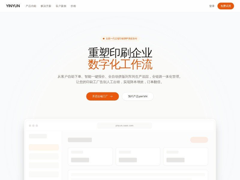 A clean SaaS landing page template for print management, ERP, and production workflow platforms. It helps printing businesses present automation, operational visibility, and digital transformation benefits with clear conversion paths.