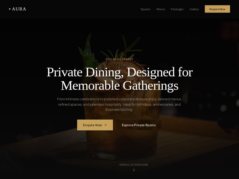 A refined private dining and events template for restaurants and venues to showcase spaces, packages, galleries, FAQs, and booking enquiries.
