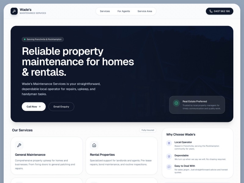 A modern, trustworthy one-page template tailored for local maintenance, handyman, and property service businesses.
