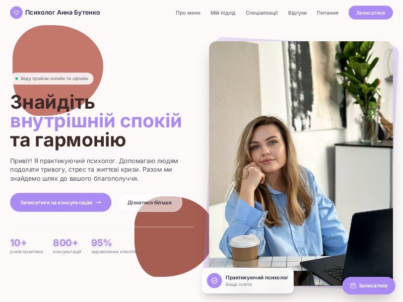 Solo psychologists, therapists, and coaches who need a ready-made, empathetic landing page template to attract and convert new clients online.