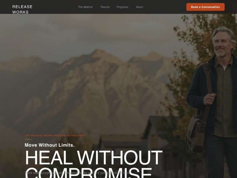 A high-conversion landing page template designed for physical therapy, myofascial release, and wellness practices seeking a premium, brand-forward digital presence.