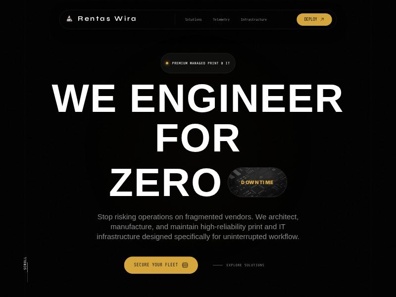 A high-performance dark-themed template designed for mission-critical IT services, managed print solutions, and enterprise infrastructure providers.