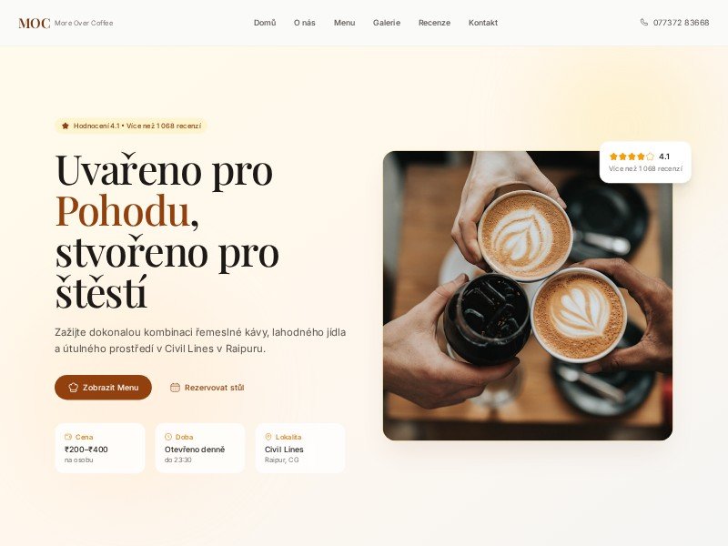 More Over Coffee is a premium coffee shop landing page template designed to showcase a cozy, Instagram-ready café brand.