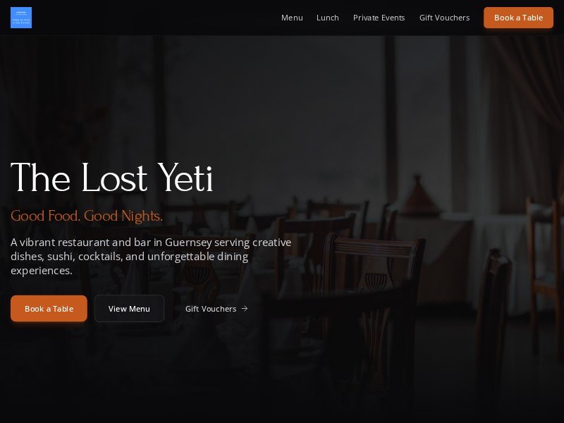 A reusable restaurant and bar landing page template for showcasing menus, bookings, private events, vouchers, and venue details in a premium nightlife style.