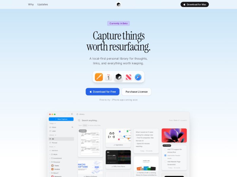 Perfect for developers and startups launching a personal knowledge base, bookmarking tool, or private note-taking app that prioritizes a premium user experience and privacy-centric messaging.