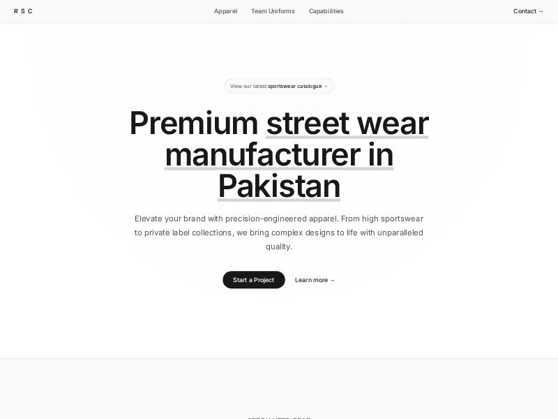 This Clean and Minimal landing page template is tailored for the garment manufacturing industry. It features a sophisticated design optimized for B2B apparel brands and athletic organizations.