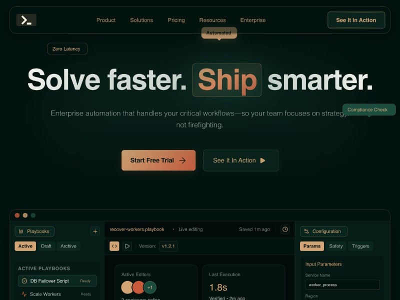 Ideal for launching or redesigning a SaaS marketing site for workflow automation, SRE/DevOps tools, or enterprise platforms that sell reliability and speed to technical teams.