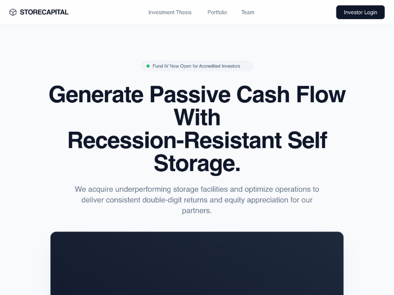 - Ideal for sponsors and capital partners promoting self storage or similar real estate funds to accredited investors, focused on credibility and call booking conversion.