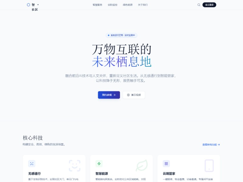 A polished, Chinese-language landing page template for promoting AI-driven smart community or residential projects.
