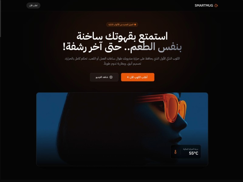 مثالي للعلامات التجارية التي تبيع منتجات تقنية أو أكواب ذكية، وترغب في صفحة عربية RTL جاهزة تروّج لمنتج واحد وتركّز على تحويل الزوار إلى عمليات شراء مباشرة.