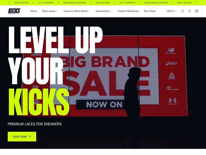 A high-impact e-commerce template designed for shoelace, sneaker accessory, and footwear brands that want a stylish storefront with strong product merchandising.