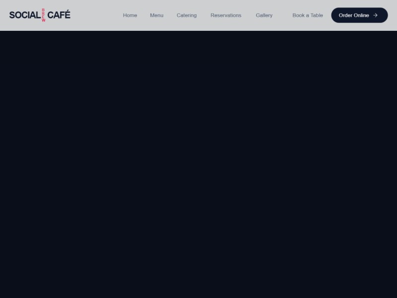 A stylish cafe and restaurant template for showcasing menus, catering, reservations, delivery, testimonials, and local brand experience online.