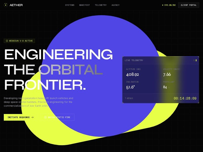 Primary use case: promoting a space exploration company, aerospace contractor, or advanced engineering agency with a premium sci-fi visual style.