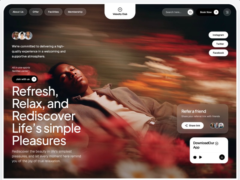 A sleek Velocity Club landing page template for modern sports centers, gyms, and fitness clubs to showcase facilities, memberships, and drive bookings.