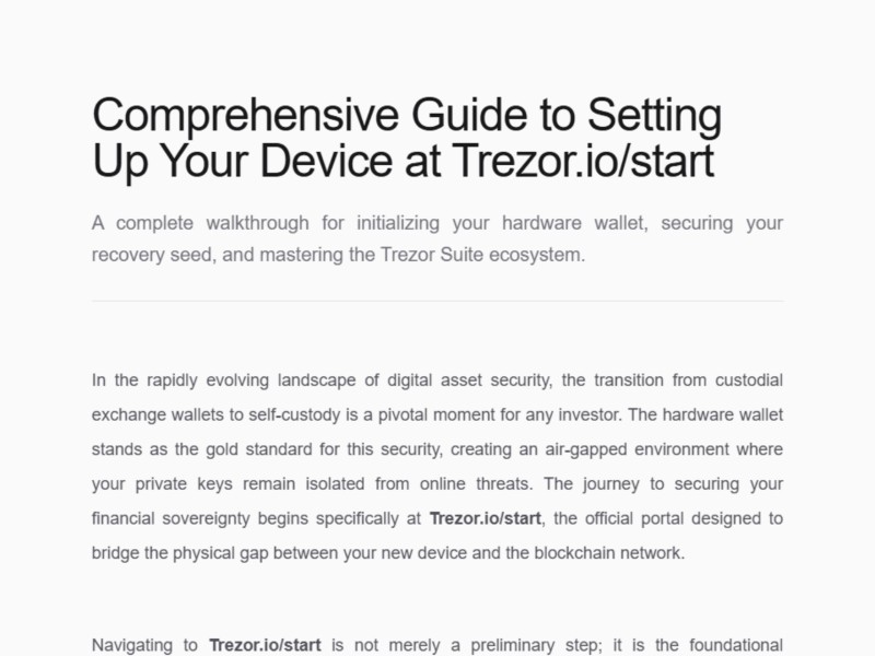 Trezor.io/Start is the official entry page created by Trezor to help users begin using their Trezor hardware wallet securely. It provides verified instructions and directs users to authentic Trezor …