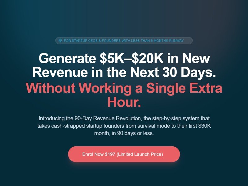 A high-conversion marketing template designed for business coaches and startup consultants offering revenue growth systems.