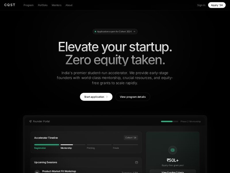 A modern dark-themed template built for accelerators, incubators, and founder programs that want to drive applications and present credibility fast.