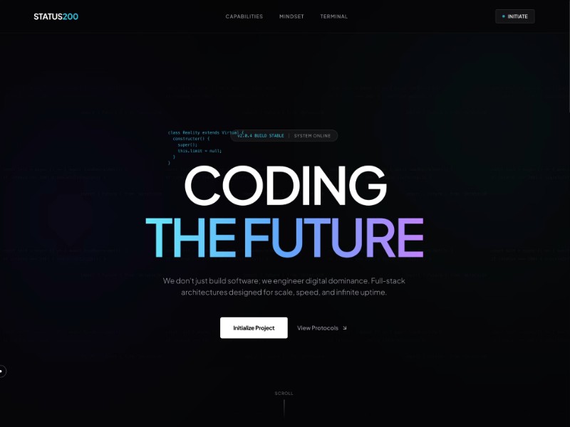 STATUS200 Digital Agency Landing Page Template delivers a sleek, dark, futuristic experience for high-end tech and digital service brands.