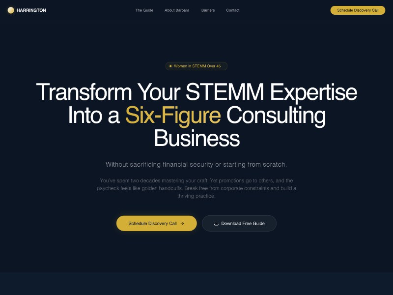 A high-impact landing page template for STEMM-to-consulting coaches to attract women over 45, showcase expertise, and drive discovery call bookings.