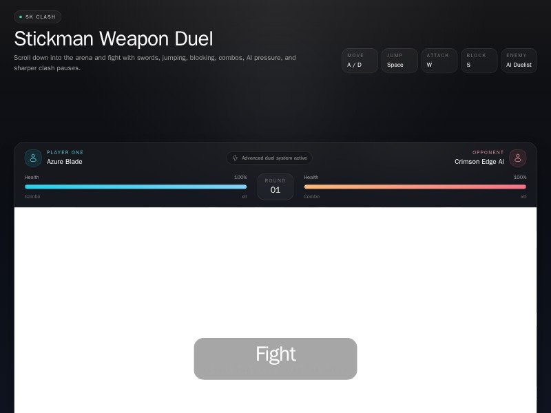 This Stickman Weapon Duel is a robust, canvas-driven game template designed for high engagement and performance. Built with Tailwind CSS and vanilla JavaScript, it provides a seamless foundation for web-based arcade experiences.