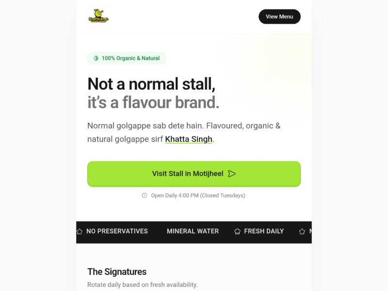 A mobile-first, brand-focused landing page template for premium street food and local eateries, inspired by a flavoured golgappa stall.
