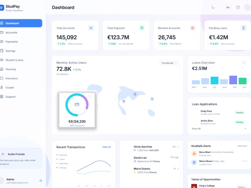 Primary use case: quickly launch or prototype a student banking or lending dashboard for fintech, digital banks, or university finance platforms.