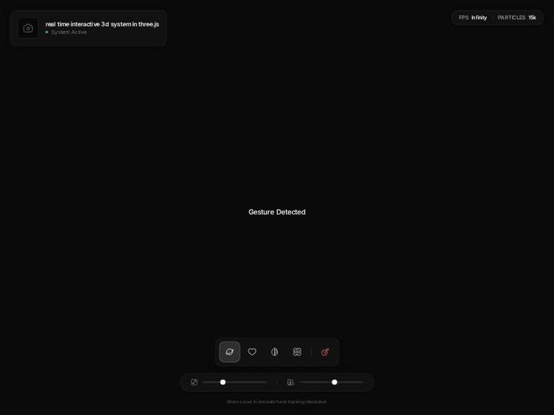 A reusable dark-mode template for showcasing real-time Three.js particle systems, gesture-inspired interactions, and immersive creative tech demos.