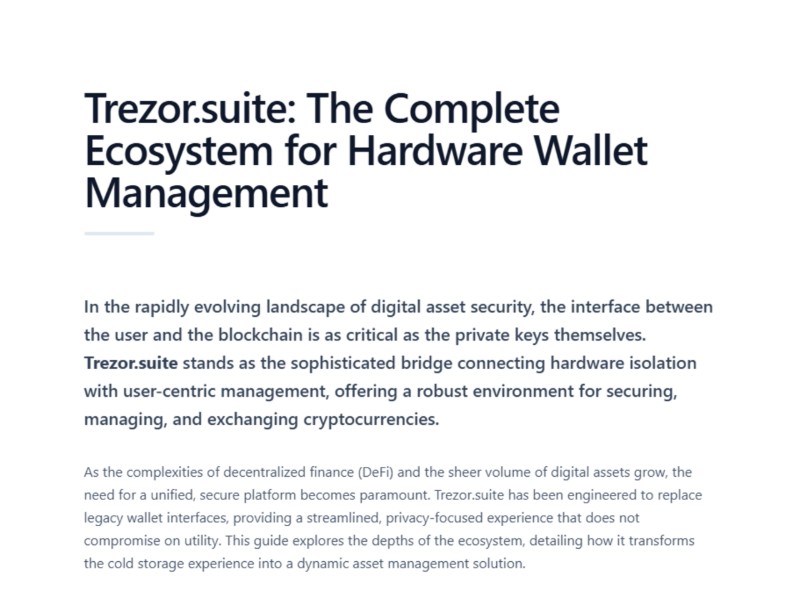 Introduction to Trezor Suite Trezor Suite is the official desktop and web application developed by SatoshiLabs to manage Trezor hardware wallets securely and efficiently. Designed with …