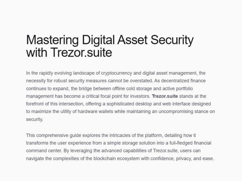Ideal for teams or creators publishing comprehensive guides on crypto security, self-custody, or software walkthroughs (like Trezor Suite) while maintaining a professional, brandable look.
