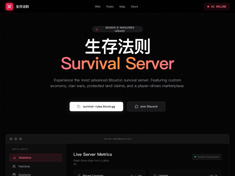 生存法则 is a high-impact gaming landing page template crafted for survival servers and online game communities.