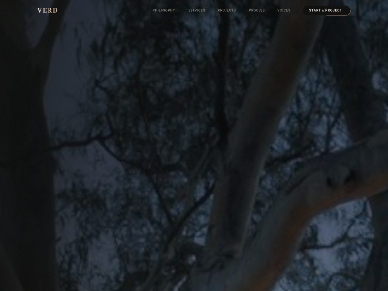 VERD Studio is a dark, editorial landing page template crafted for sustainable architecture and design studios.
