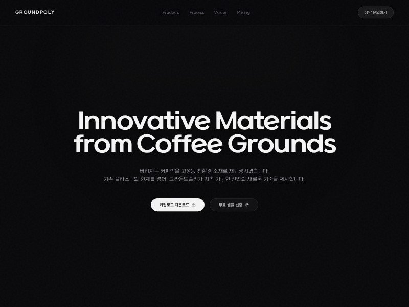 A dark, premium landing page template for brands transforming waste into high-performance materials. Ideal for biomaterial startups, sustainable packaging suppliers, and industrial innovation companies.