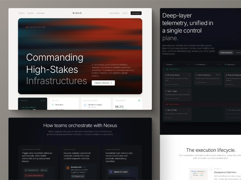 A polished landing page template for infrastructure, DevOps, and process orchestration products that need a premium enterprise presence.