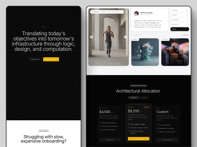A premium technology services landing page template designed for consulting firms, infrastructure strategists, and high-end digital service brands that want a sharp, futuristic presence.