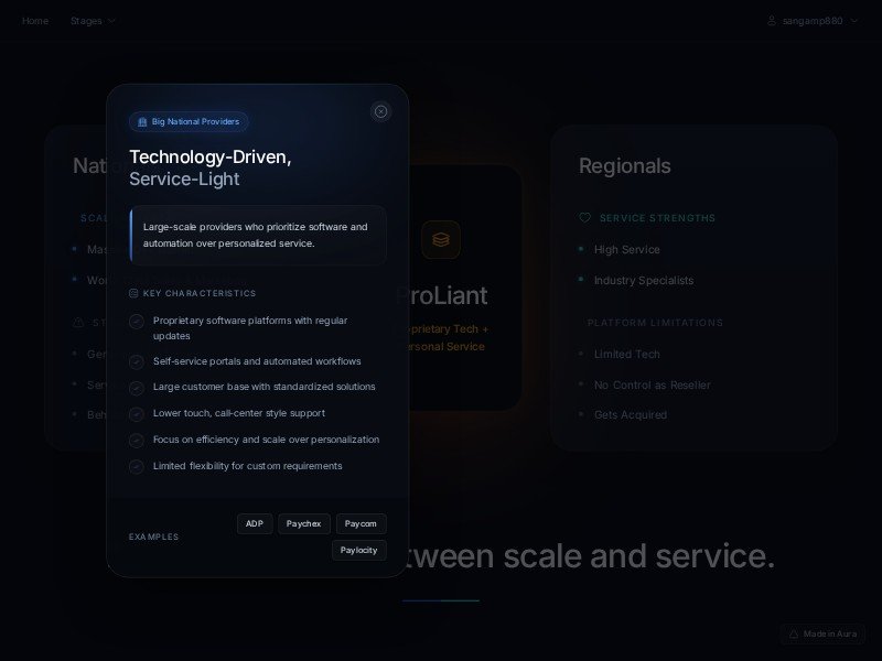 A sleek landing page template for technology and service brands that need to communicate market positioning, product differentiation, and a high-touch service model.