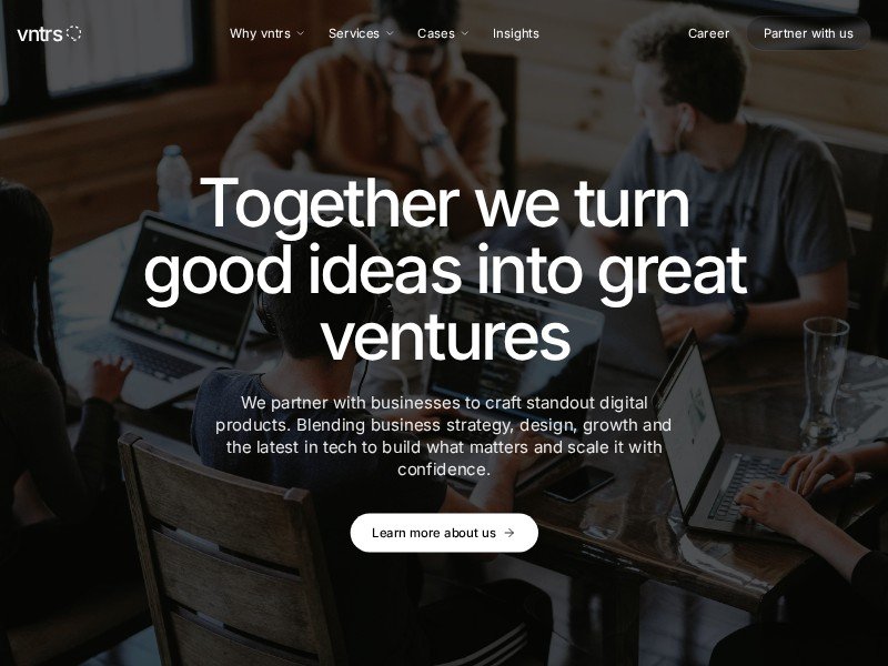 A reusable landing page template for digital product studios, venture builders, and AI-focused consultancies to showcase services, cases, and client trust.