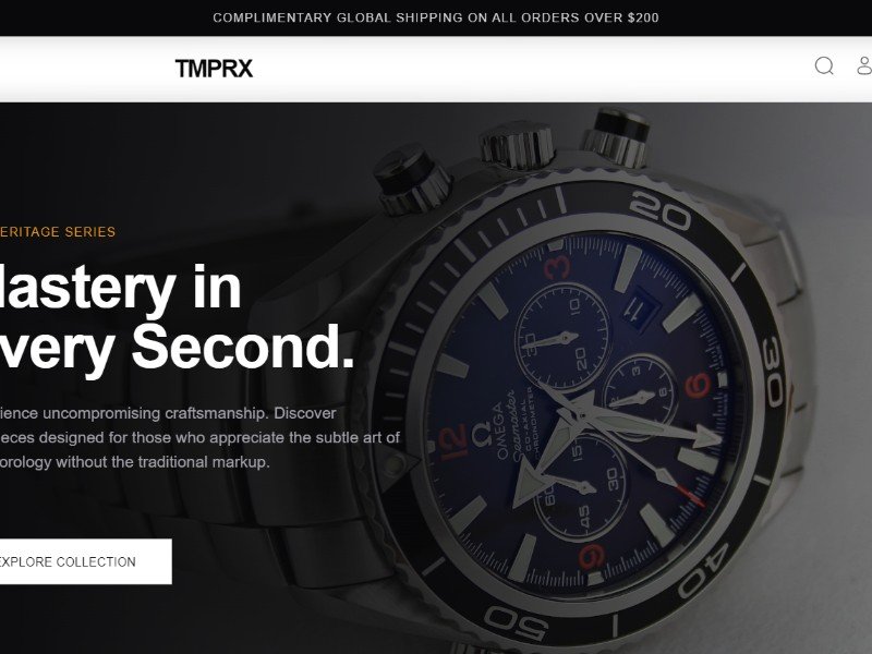 This premium e-commerce template is meticulously crafted for brands that prioritize craftsmanship and elegance. It features a high-impact hero section with a backdrop-blur navigation menu, perfectly suited for high-ticket luxury goods like watches and fine jewelry.