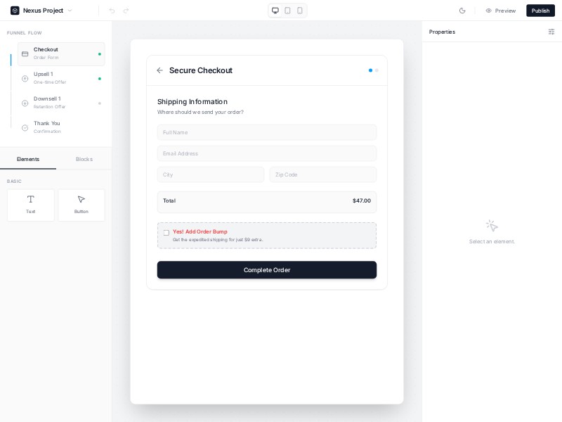 Nexus Page Builder Template delivers a full funnel-building interface for crafting high-converting checkout flows.