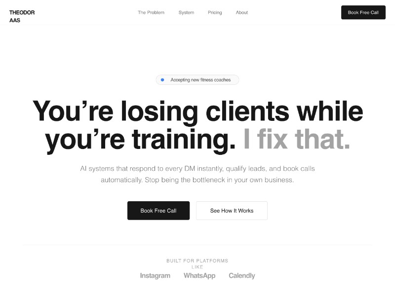 A clean, conversion-focused landing page template for fitness coaches selling AI DM automation systems and booking discovery calls online.
