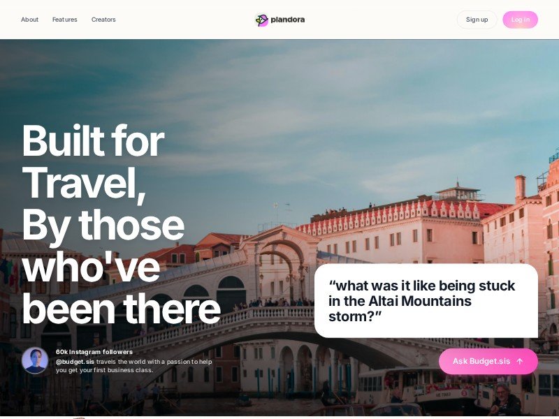 A high-conversion hero-led landing page template inspired by Plandora, built for modern travel and creator platforms.