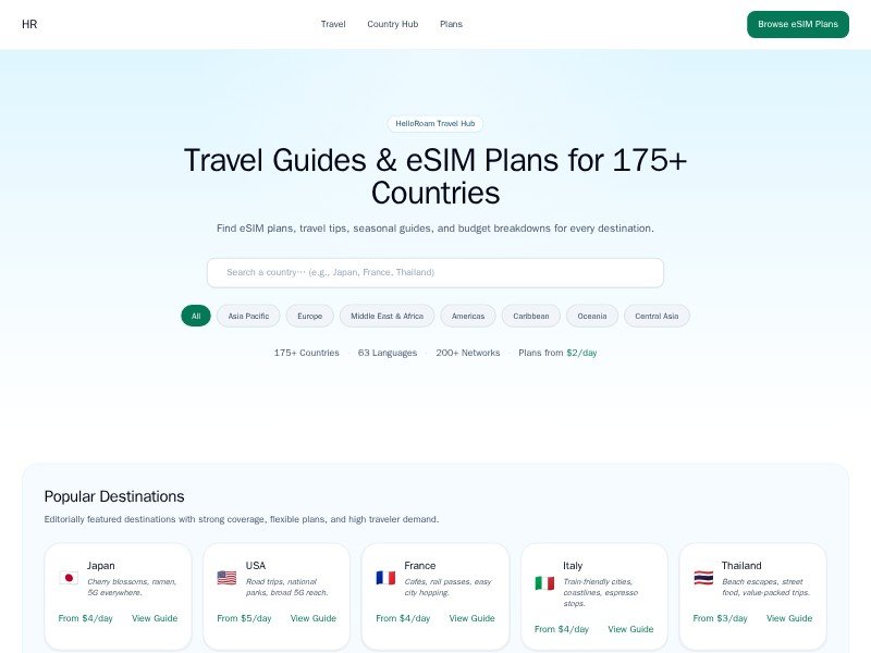 Primary use case: Ideal for travel startups, eSIM providers, and global mobility brands creating SEO-friendly destination pages that drive plan purchases.